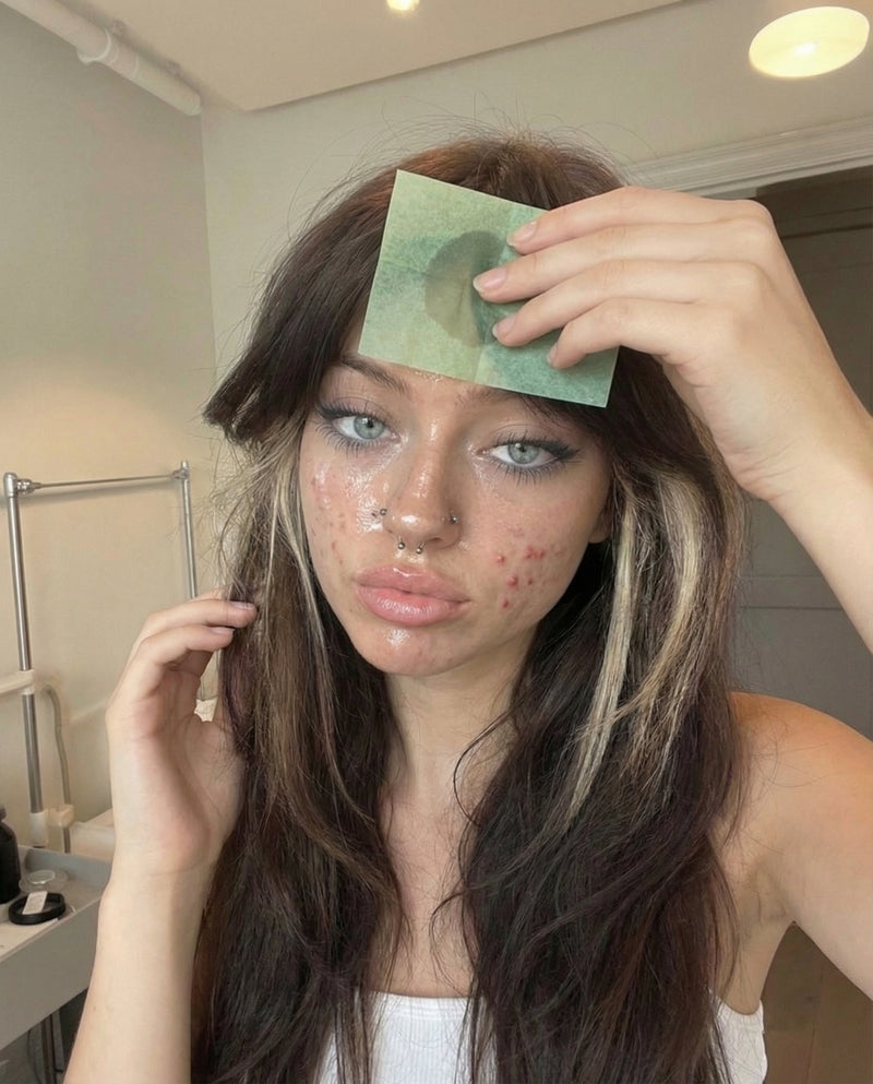 Don't fight the oil. Manage the glow. The blotting paper physically removes the fuel (sebum) without disturbing your makeup. Reset the canvas instantly.